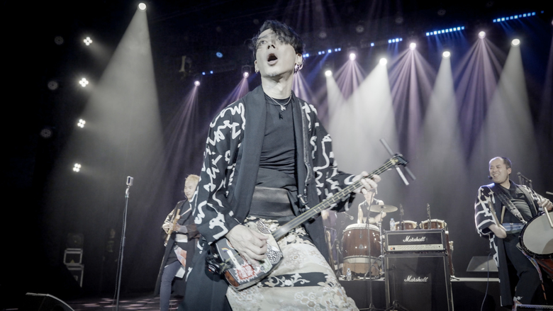 京都を拠点に活動する、和太鼓と三絃ギターを軸に編成されたロックバンド。
